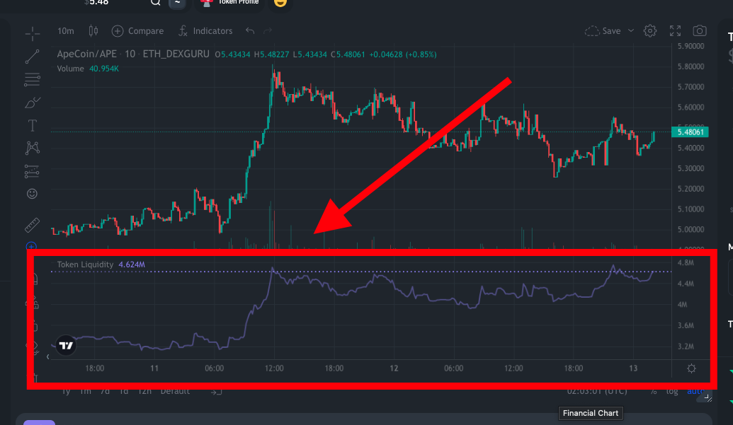 Allows you to directly see the token's liquidity over time on the chart. Learn more about how we calculate liquidity [here](https://docs.dex.guru/features/token-liquidity). &#x20;