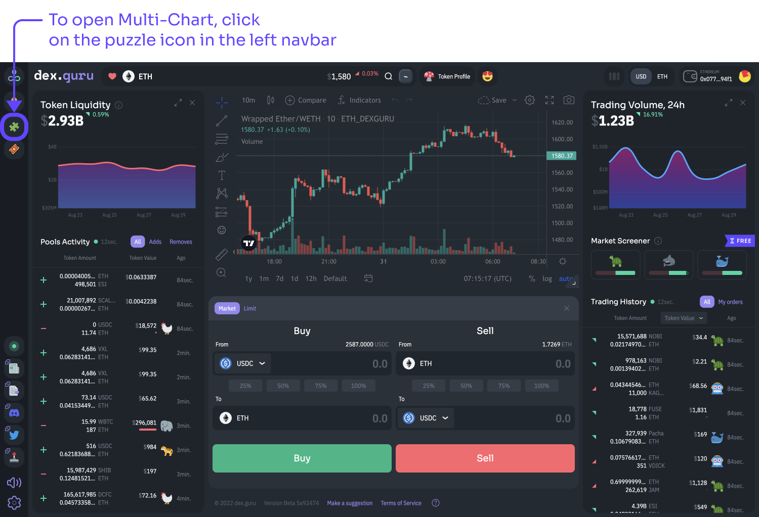 To open Multi-Chart, click on the puzzle π§© icon in the left navbar.